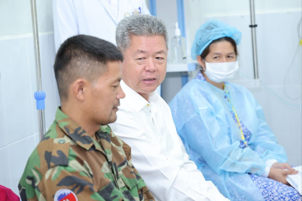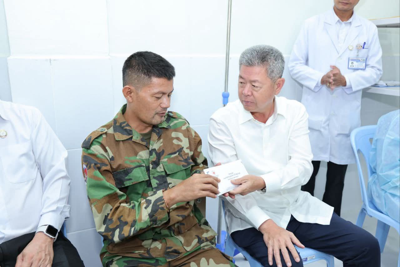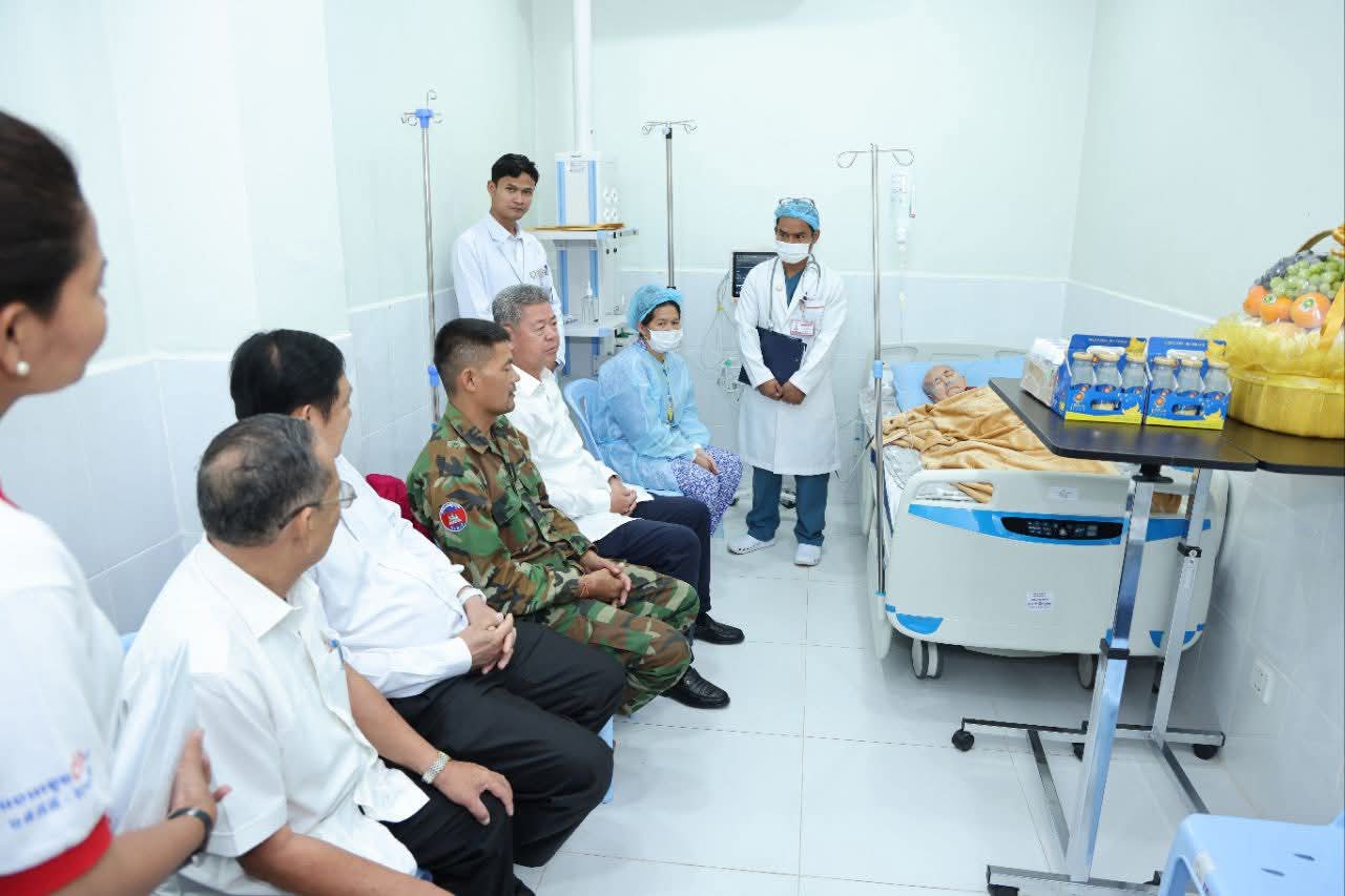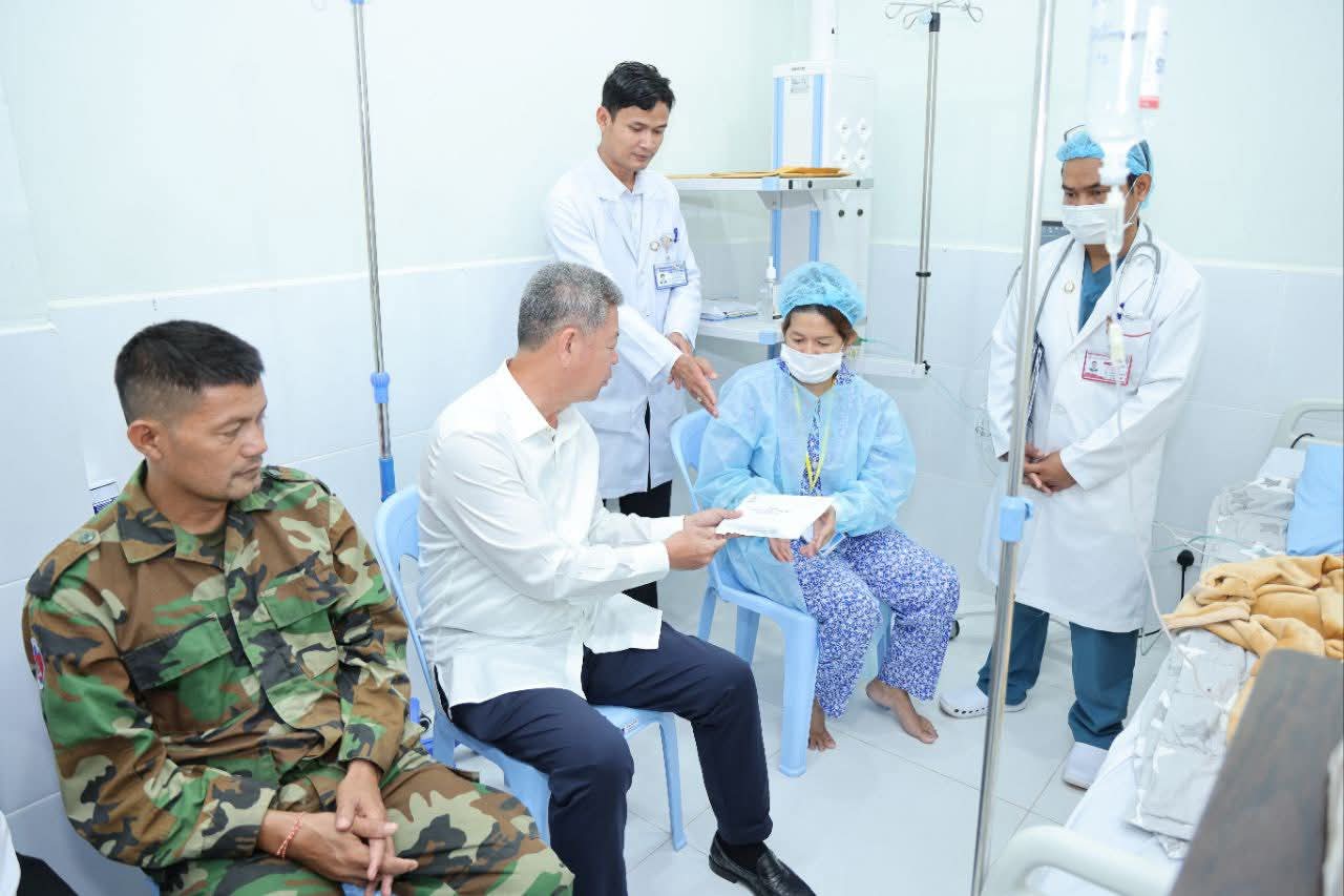 ខេត្តកណ្តាល៖ ព្រឹកថ្ងៃទី២២ ខែសីហា ឆ្នាំ២០២៥ ឯកឧត្ដម គួច ចំរើន អភិបាល នៃគណៈអភិបាលខេត្តកណ្ដាល អញ្ជើញសួរសុខទុក្ខម្ដាយ វីរៈកងទ័ពជួរមុខនៅតំបន់ប្រាសាទតាក្របី កំពង់សម្រាកព្យាបាលនៅមន្ទីរពេទ្យតេជោ សែនកោះធំ ស្ថិតក្នុងភូមិកំពង់ស្វាយក្រោម ឃុំព្រែកថ្មី ស្រុកកោះធំ ខេត្តកណ្តាល។