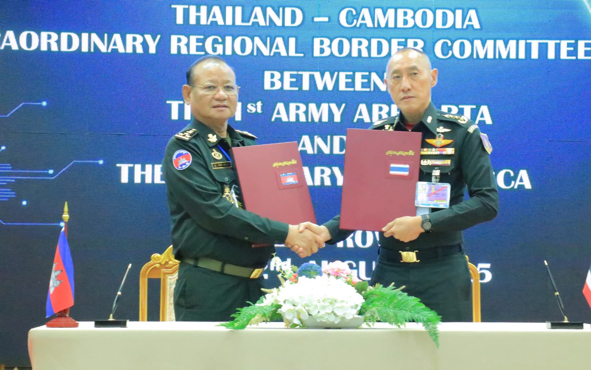 ភ្នំពេញ÷ក្រសួងការពារជាតិសូមជម្រាបជូនដល់សាធារណជន និងអ្នកសារព័ត៌មានជាតិ និងអន្តរជាតិអំពីលទ្ធផលនៃកិច្ចប្រជុំវិសាមញ្ញរបស់គណៈកម្មាធិការព្រំដែនថ្នាក់យោធភូមិភាគកម្ពុជា-ថៃ (RBC) រវាងយោធភូមិភាគទី៥របស់កម្ពុជា និងកងទ័ពភូមិភាគទី១របស់ថៃ នៅថ្ងៃទី២២ ខែសីហា ឆ្នាំ២០២៥ នៅខេត្តស្រះកែវ ព្រះរាជាណាចក្រថៃ។