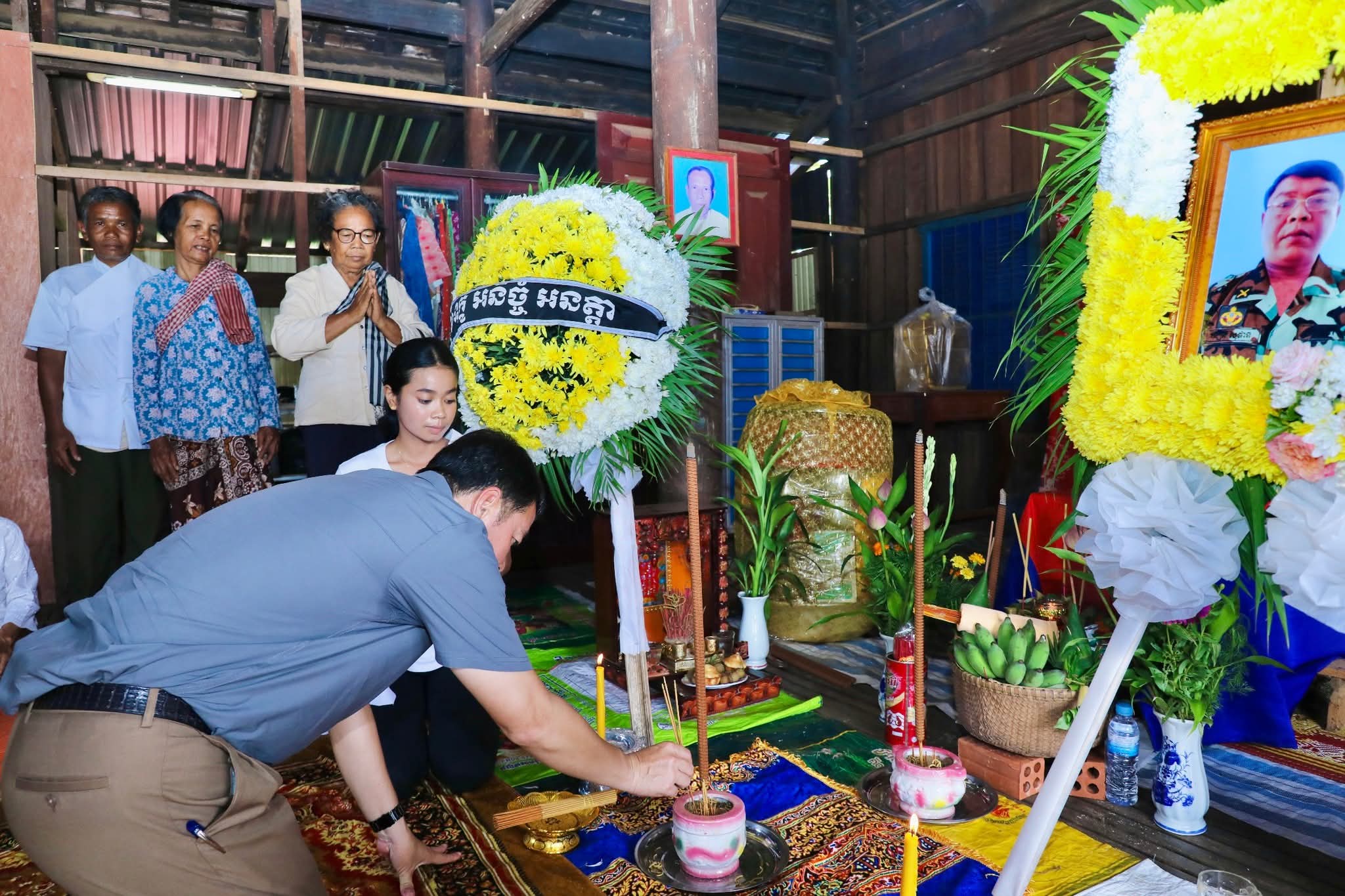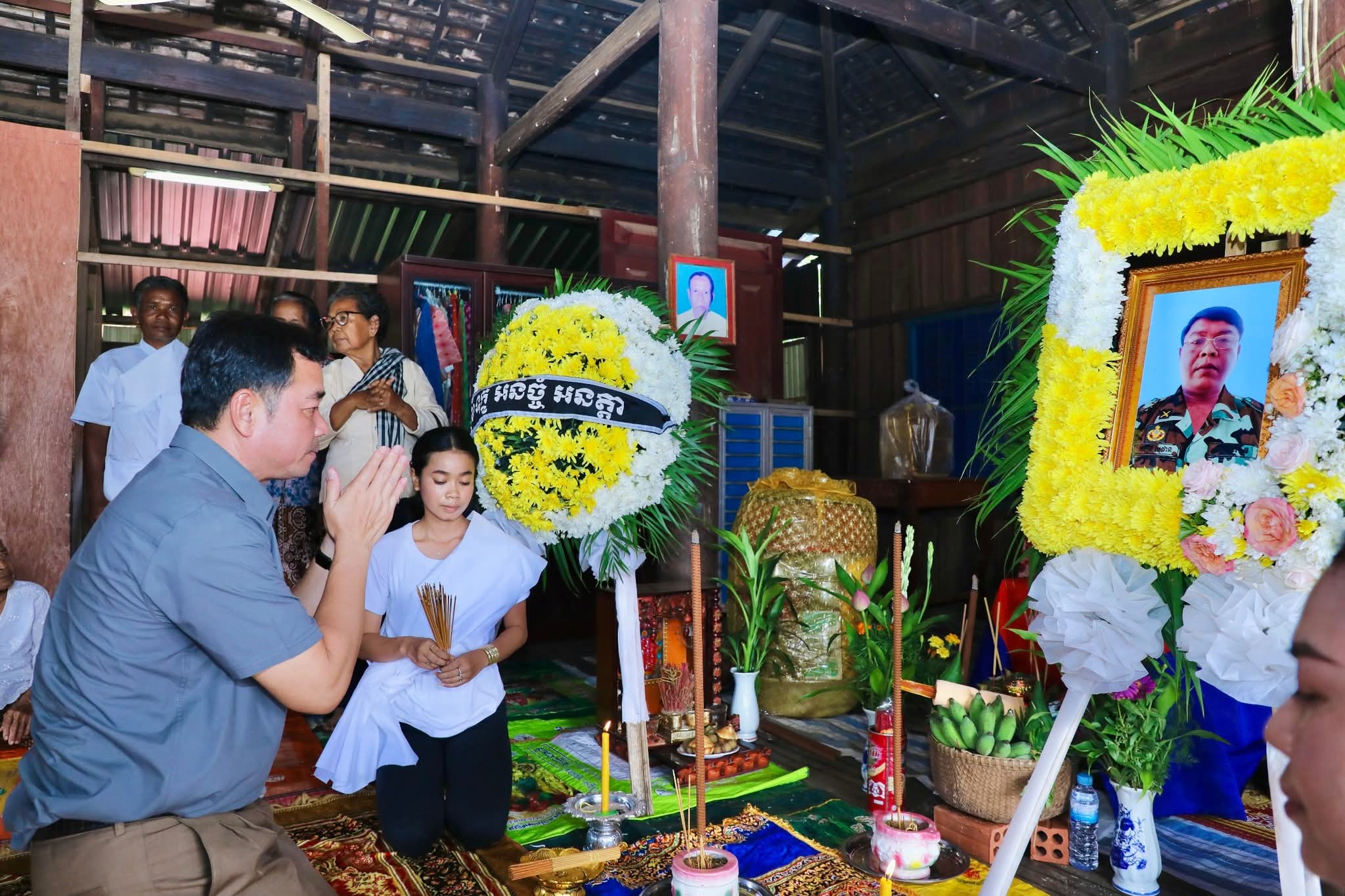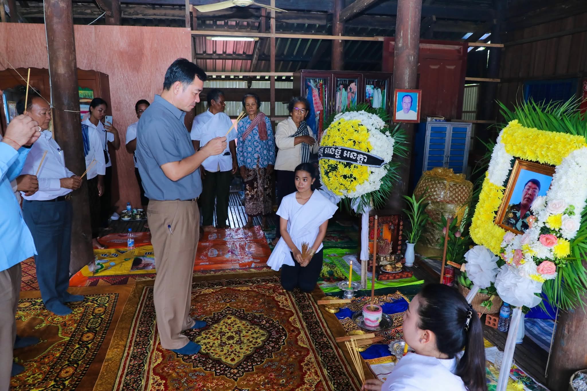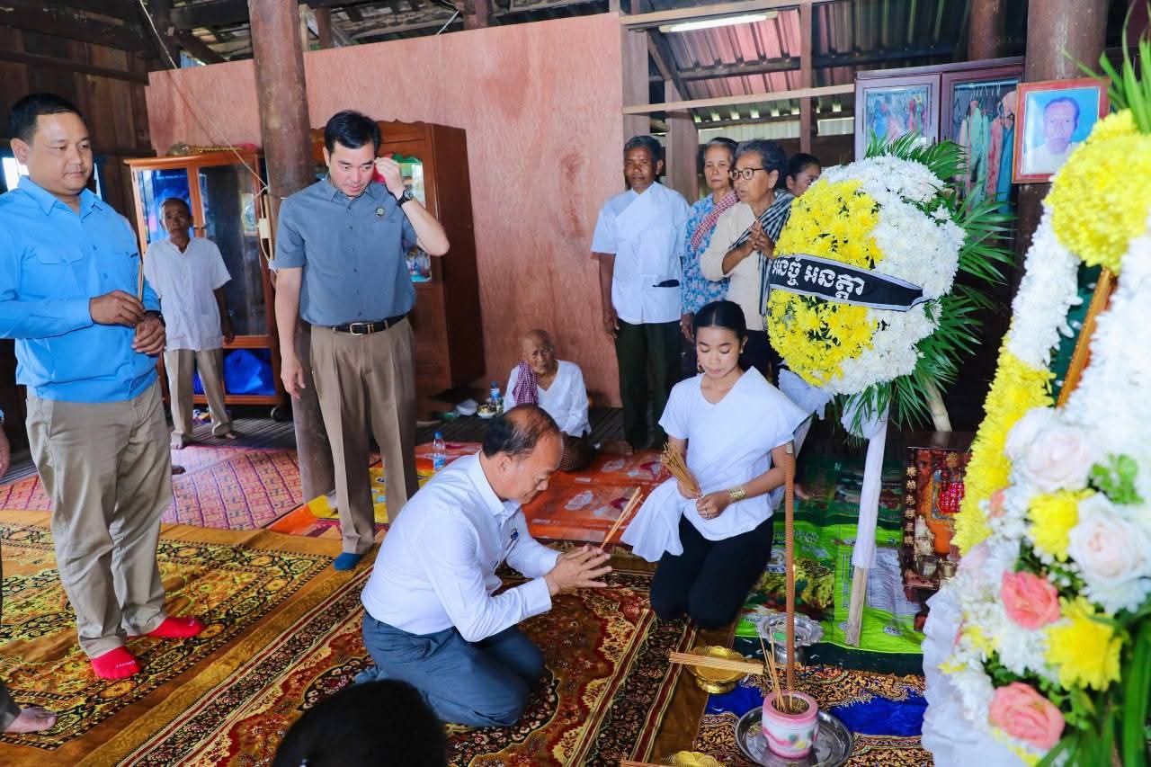 កំពង់ចាម÷ នៅរសៀលថ្ងៃអាទិត្យ ទី២៤ ខែសីហា ឆ្នាំ២០២៥ នេះ ឯកឧត្តម អ៊ុន ចាន់ដា អភិបាលនៃគណៈអភិបាលខេត្តកំពង់ចាម និងសហការី បានអញ្ជើញចូលរួមរំលែកមរណទុក្ខ និងគោរពវិញ្ញាណក្ខន្ធសព យោធិនចូលនិវត្តន៍ ឈ្មោះ នឿន សុផាន ដែលបានទទួលមរណភាពកាលពីថ្ងៃទី២៣ ខែសីហា ឆ្នាំ២០២៥ ក្នុងជន្មាយុ៥៦ឆ្នាំ ដោយរោគាពាធ ស្ថិតនៅភូមិអូរកំបោរ ឃុំបារាយណ៍ ស្រុកព្រៃឈរ ខេត្តកំពង់ចាម។